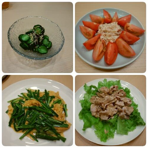 久しぶりに、今日のお家ごはんでございます 胡瓜の浅漬け つばめグリルの「トマトのファルシーサラダ」風 「トマトのファルシーサラダ」は、チキンサラダがトマトに 入っていますが、ツナサラダで代用しました。 ニラ玉 豚しゃぶ胡麻だれソース でした 今日…