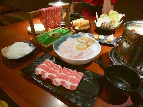 今日のランチは「八宝」さんです コラーゲン鍋・火鍋などがいただけます。 今日もコースをお願いしました。 私は「コラーゲンスープ」 旦那さまは「火鍋スープ」です。 日鍋スープも、ベースは コラーゲンスープです。 本当に美味しいスープです。 何も具材…